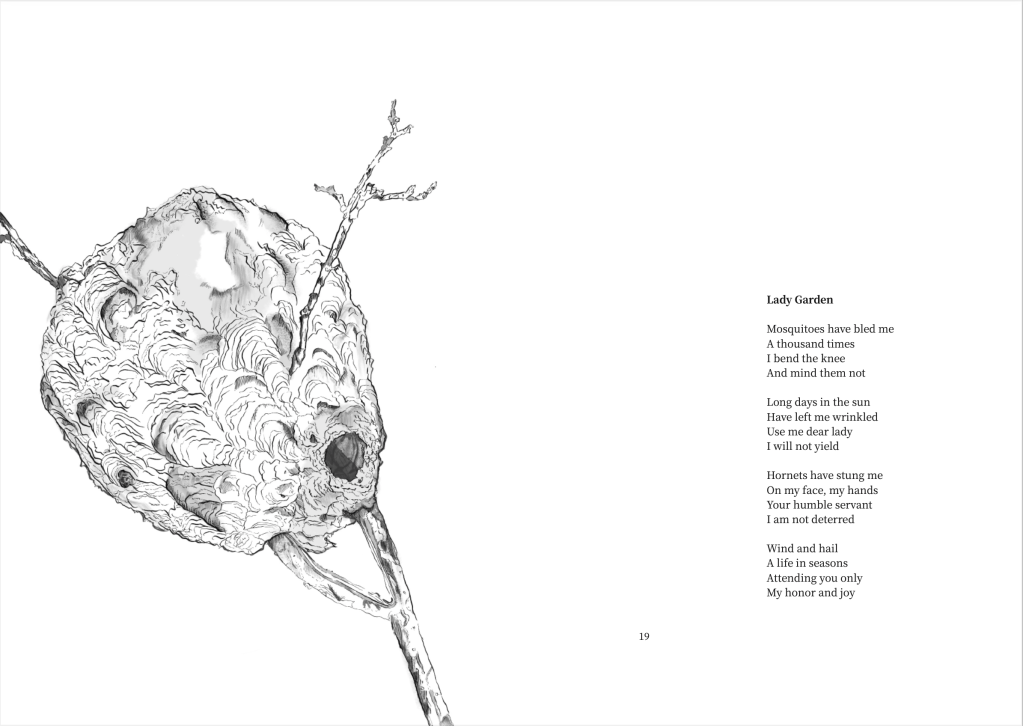 77 Poems From a Philadelphia Garden is a collection of poems that author Aron Goldschneider composed over the course of seven solitary yet joyful years tending to a cherished, historic garden. Lovingly and richly illustrated by his daughter Bronwyn Goldschneider, the book was written with the belief that gardening and contemplation, and therefore gardening and poetry, go hand in hand—those who live in gardening experience a kind of poetry in their devotion. Alongside the central wellsprings of poetry—love, death, nature—the work explores the gardener’s dilemma: the folly in the very notion of “my garden” amid impermanence and forces beyond control. These lived contradictions are the poet’s constant companions, like the catbirds who return each year to work alongside him, offering beauty and amusement, yet vying for fruit.